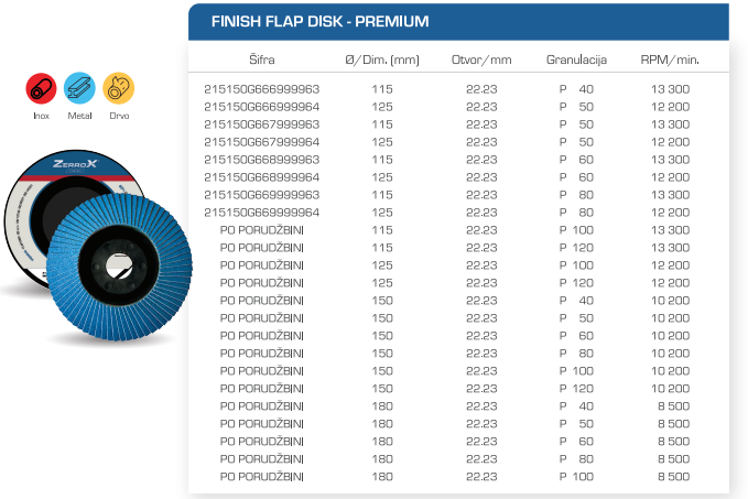 • Visokokvalitetno cirkonijumsko zrno → maksimalan učinak i trajnost