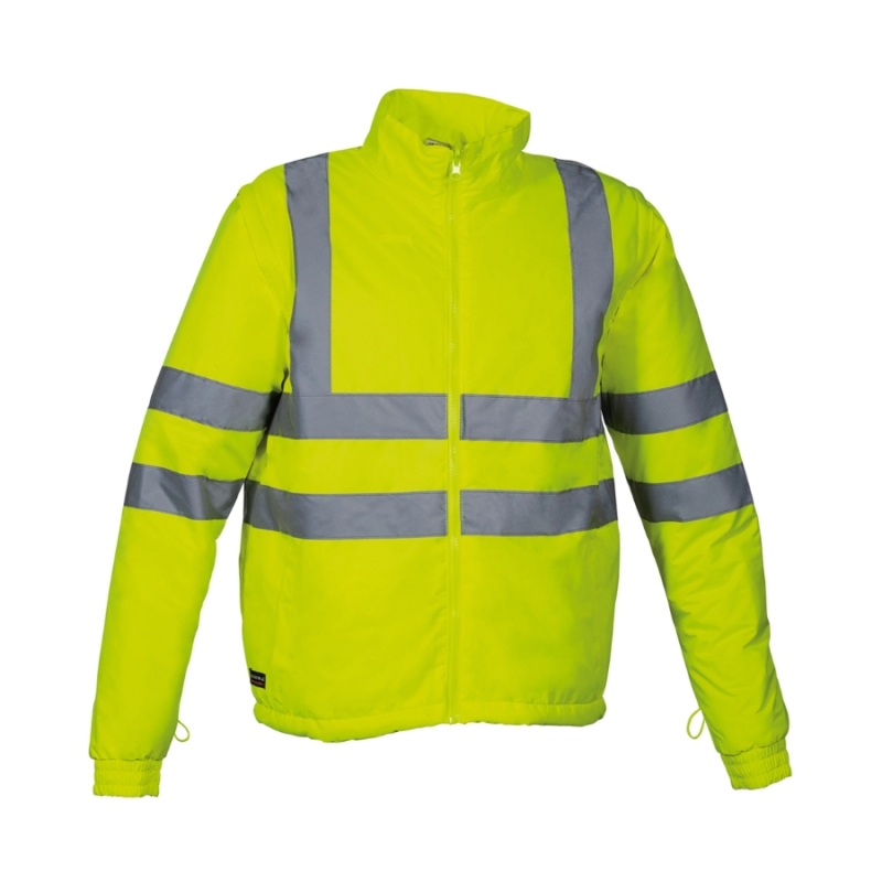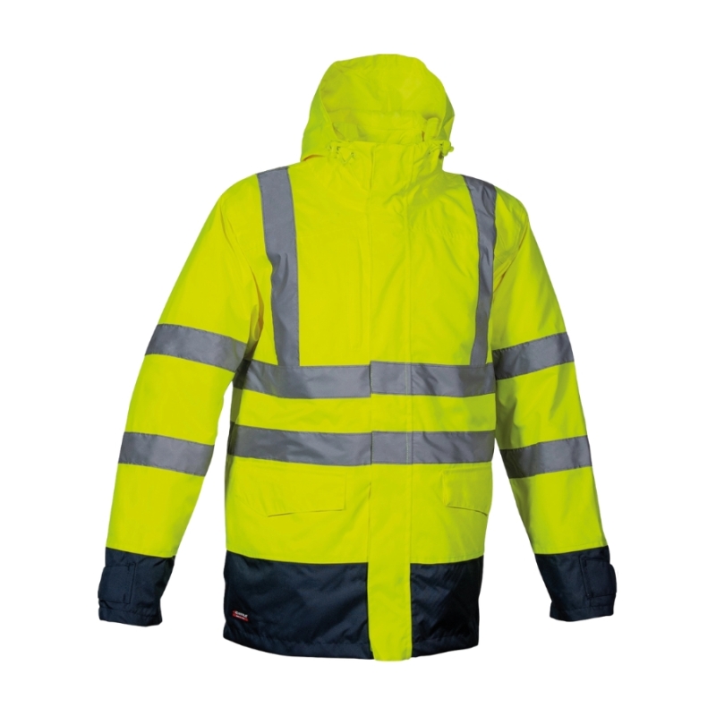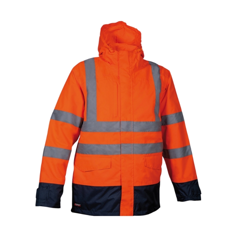 COFRA TELSEN je zimska radna jakna visoke vidljivosti namenjena profesionalcima koji rade u spoljnim, hladnim i vlažnim uslovima rada. Model je konstruisan kao 5 u 1 sistem — može se koristiti kao puna jakna/parkа, izolacioni sloj, prsluk ili kombinacija slojeva, čime pruža fleksibilnost i udobnost tokom promenljivih vremenskih uslova.